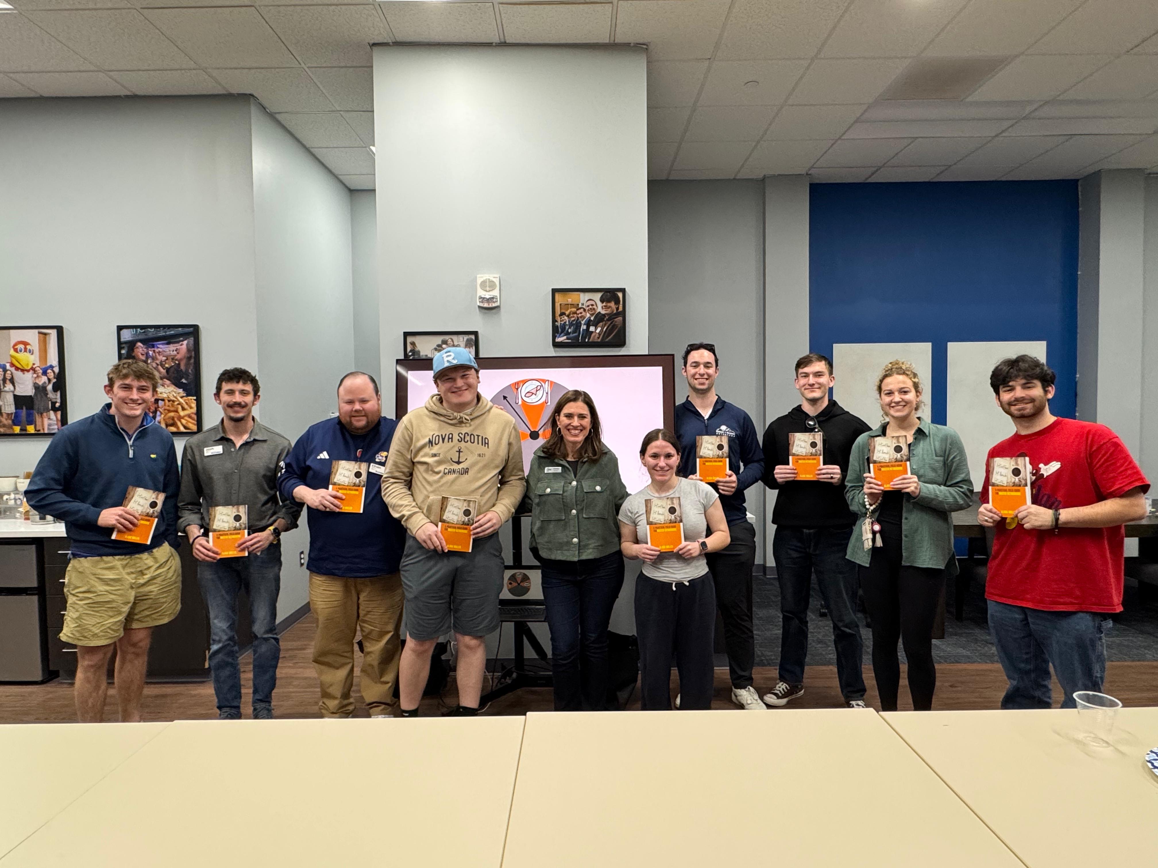Alana Muller (center) joined by KU students and staff. Muller came to KU Hillel to teach students the art of authentic professional networking.