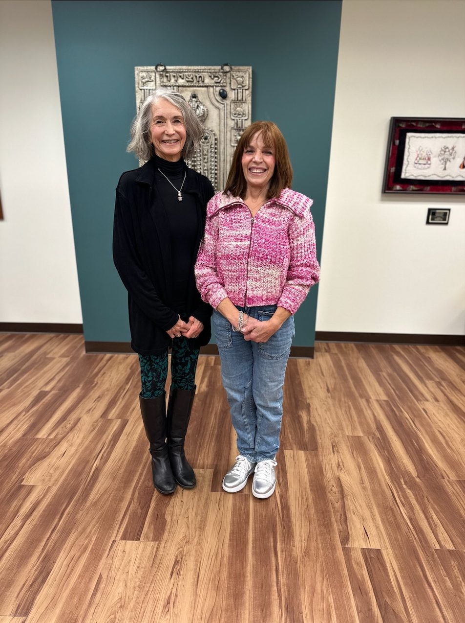 Audrey Asher with Café Shalom presenter Amy Tranin in November 2025.