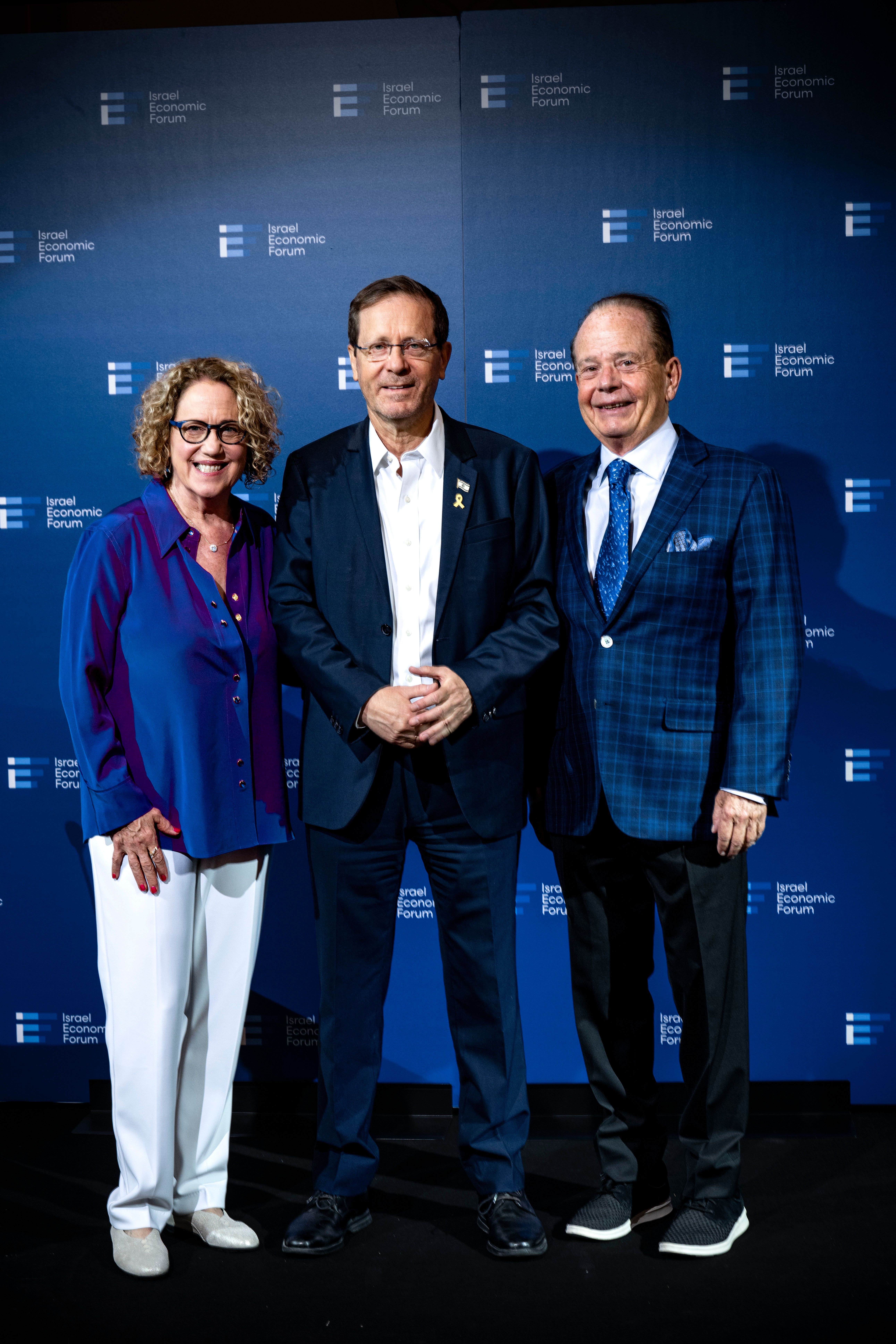 Ellen and Irv Robinson (left and right) with Israel President Isaac Herzog at the Israel Economic Forum.