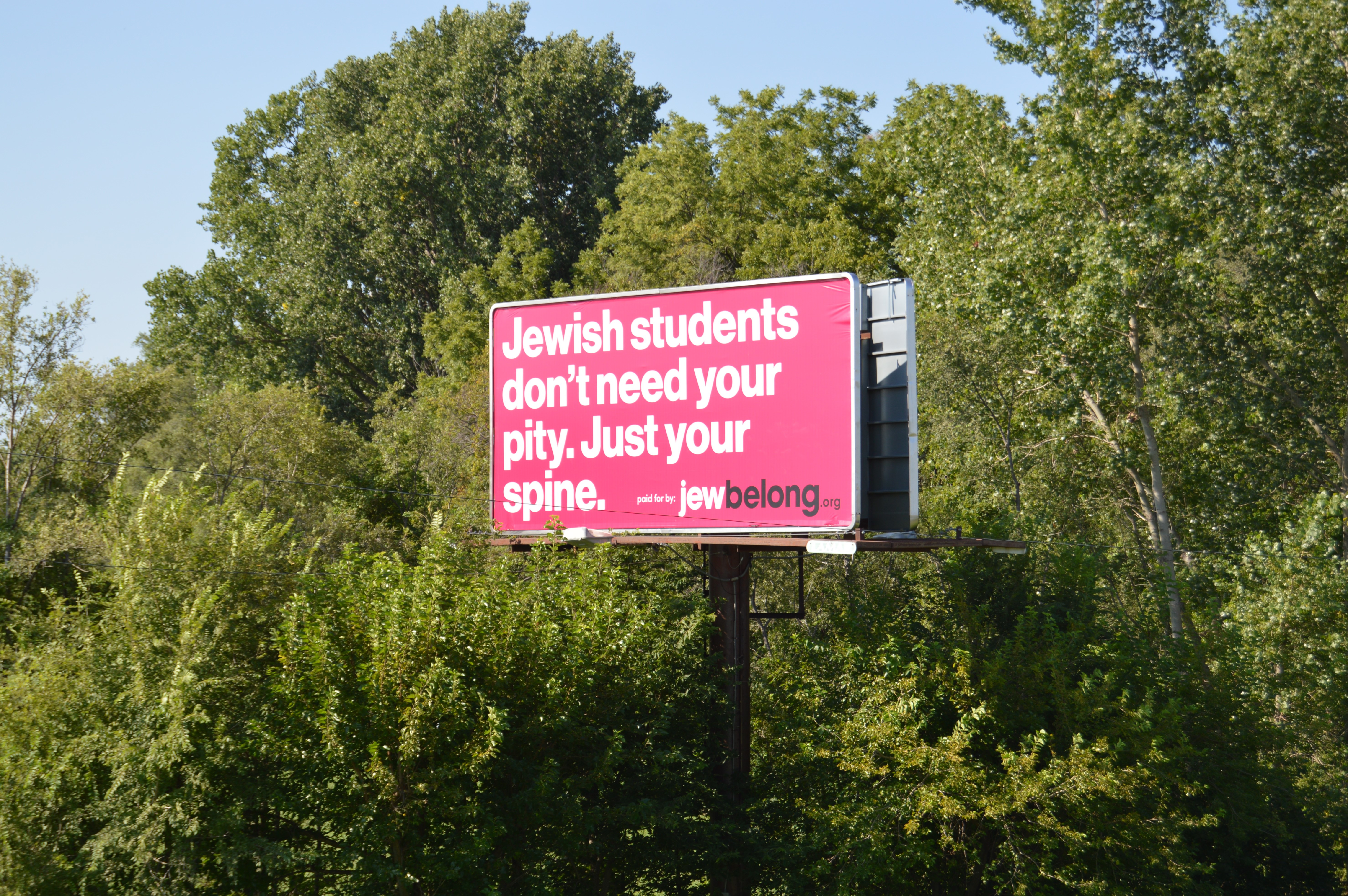 - “Jewish students don’t need your pity. Just your spine.” (I-70 and E. 1500 Rd. )