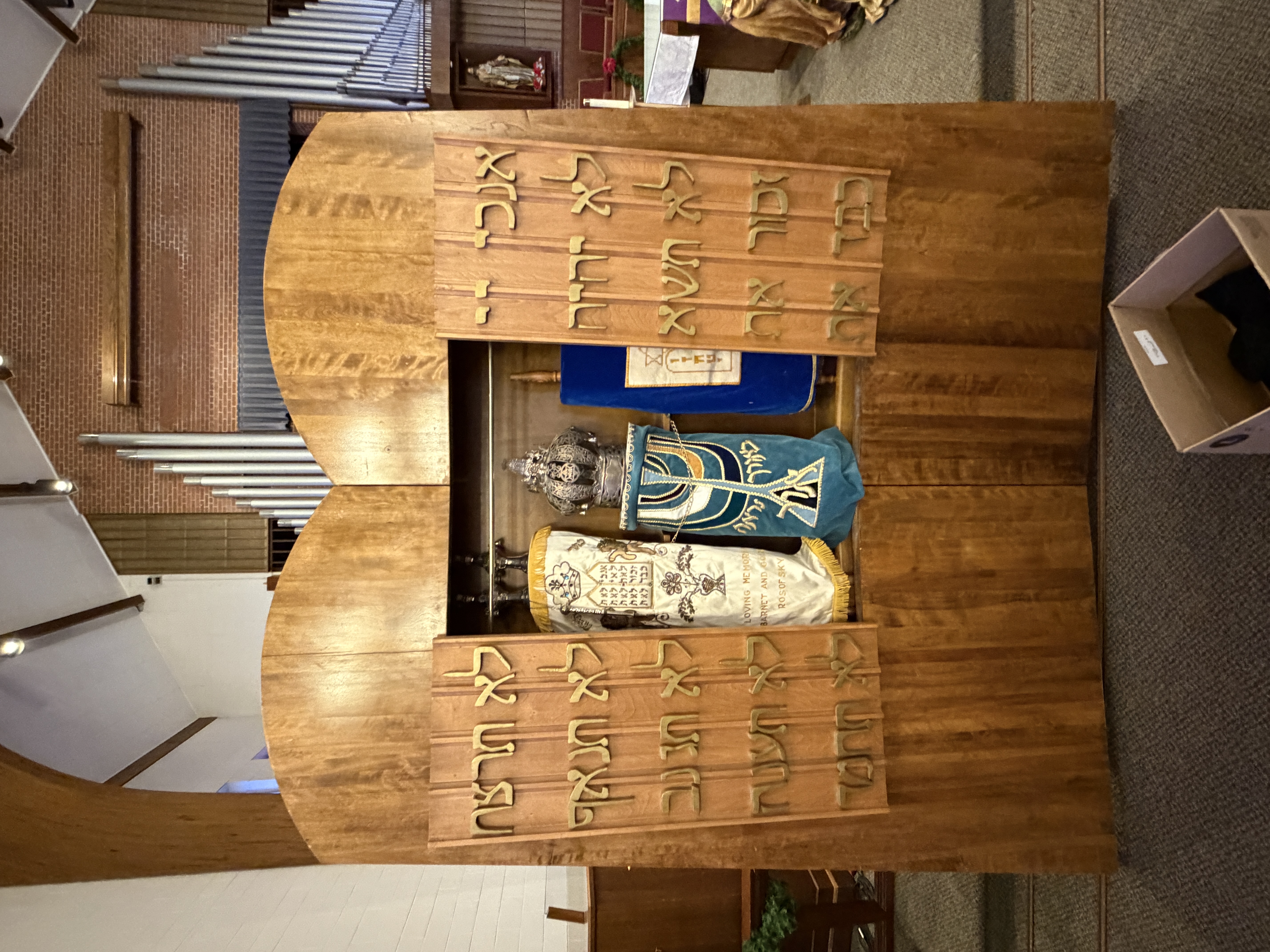 The arc containing Torahs inside a historic chapel at Fort Leavenworth.